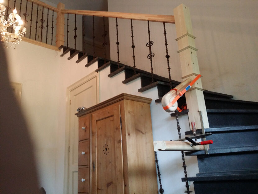 Nieuwe trapleuning, balusters en trappalen in monumentale stijl Project: IW04 Nieuwe trappalen, balusters en leuning vervaardigd in klassieke stijl. IJzeren balusters behouden als decoratief element. Read more